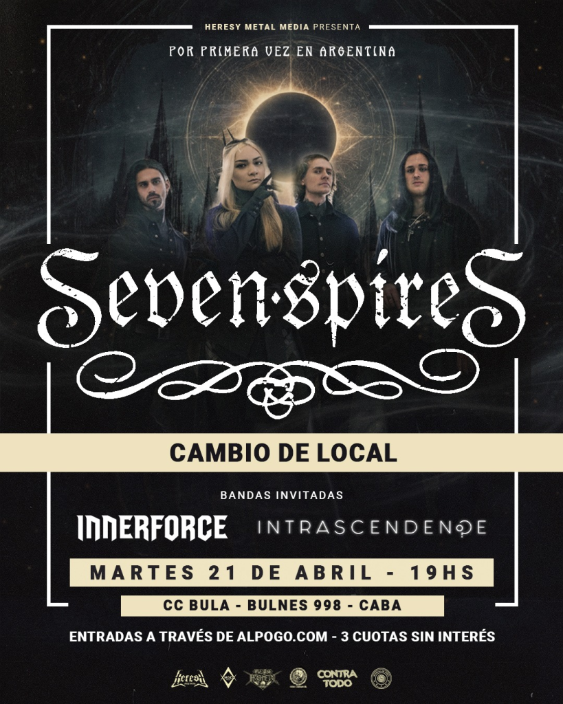 A pocos días de su esperada llegada al país, el show de Seven Spires en Buenos Aires presenta una modificación clave: cambio de sala, pero no de intensidad. La cita será finalmente en C.C. BULA, un espacio ideal para vivir de cerca una propuesta que combina técnica, dramatismo y potencia.